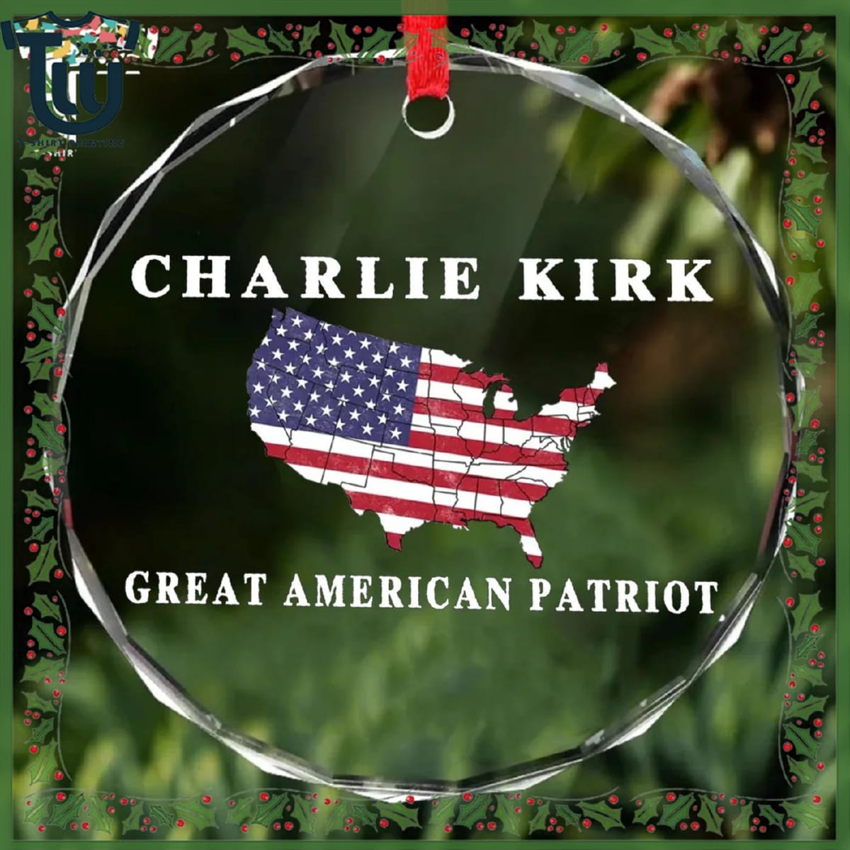 Checkout Charlie Kirk Great American Patriot Glass Ornament