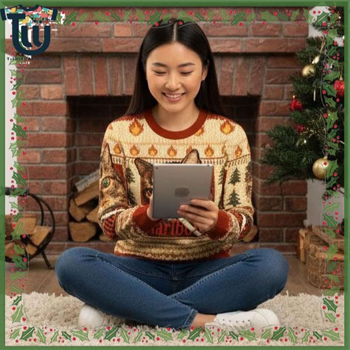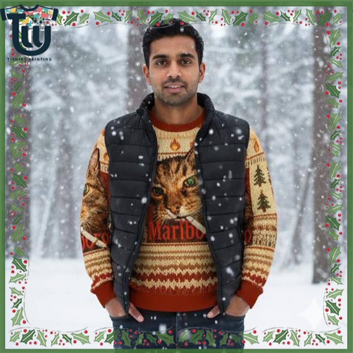 ### Embrace the Holidays with a Hilarious Twist: The Funny Smoking Cat Meme Christmas Ugly Sweatshirt