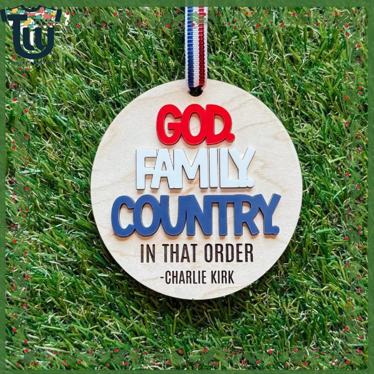 Checkout God Family Country Charlie Kirk Wood Ornament