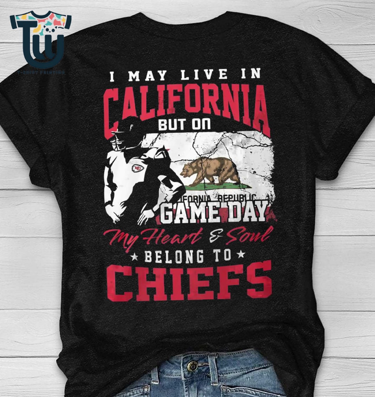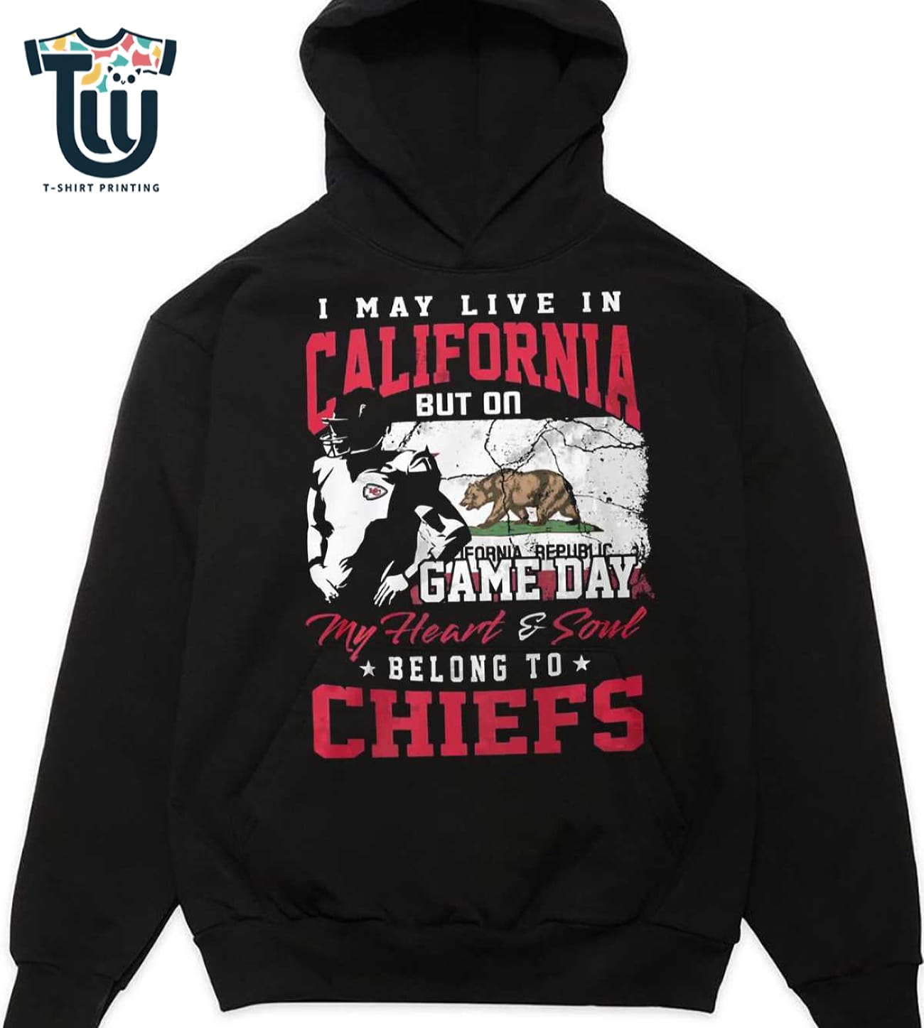 Checkout I May Live In California But On Game Day My Heart & Soul Belong To Chiefs Shirt Sweatshirt Hoodie