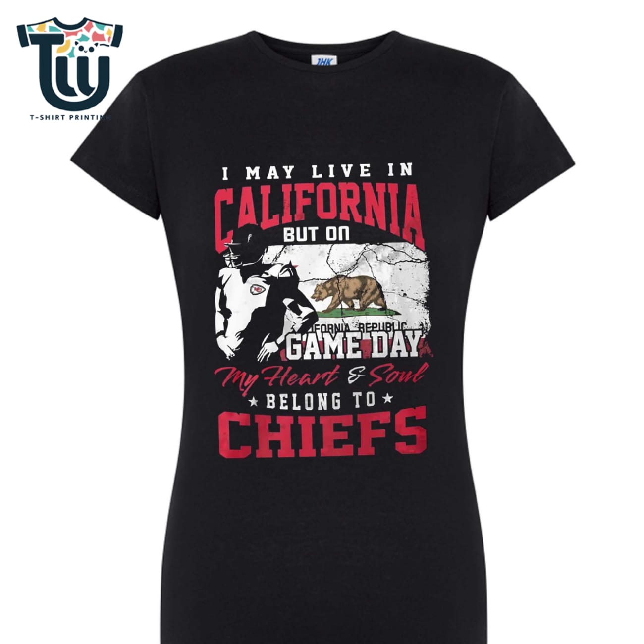 I May Live In California But On Game Day My Heart & Soul Belong To Chiefs Shirt Sweatshirt Hoodie Information Product: