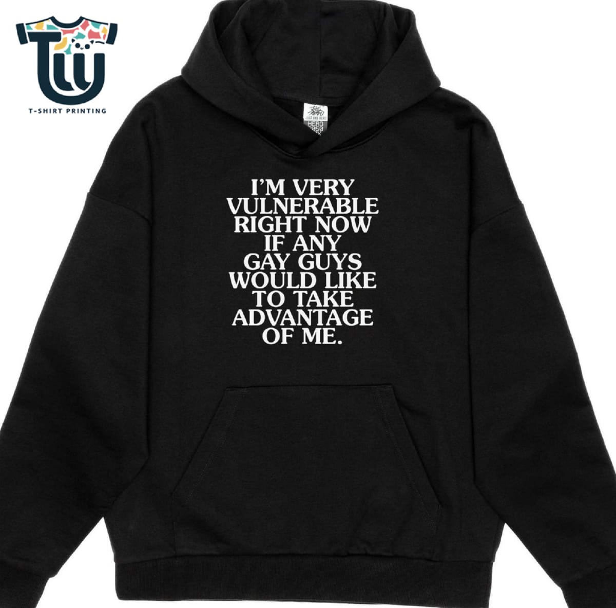 I’m Very Vulnerable If Any Gay Guys Would Like To Take Advantage Of Me Shirt Sweatshirt Hoodie Information Product: