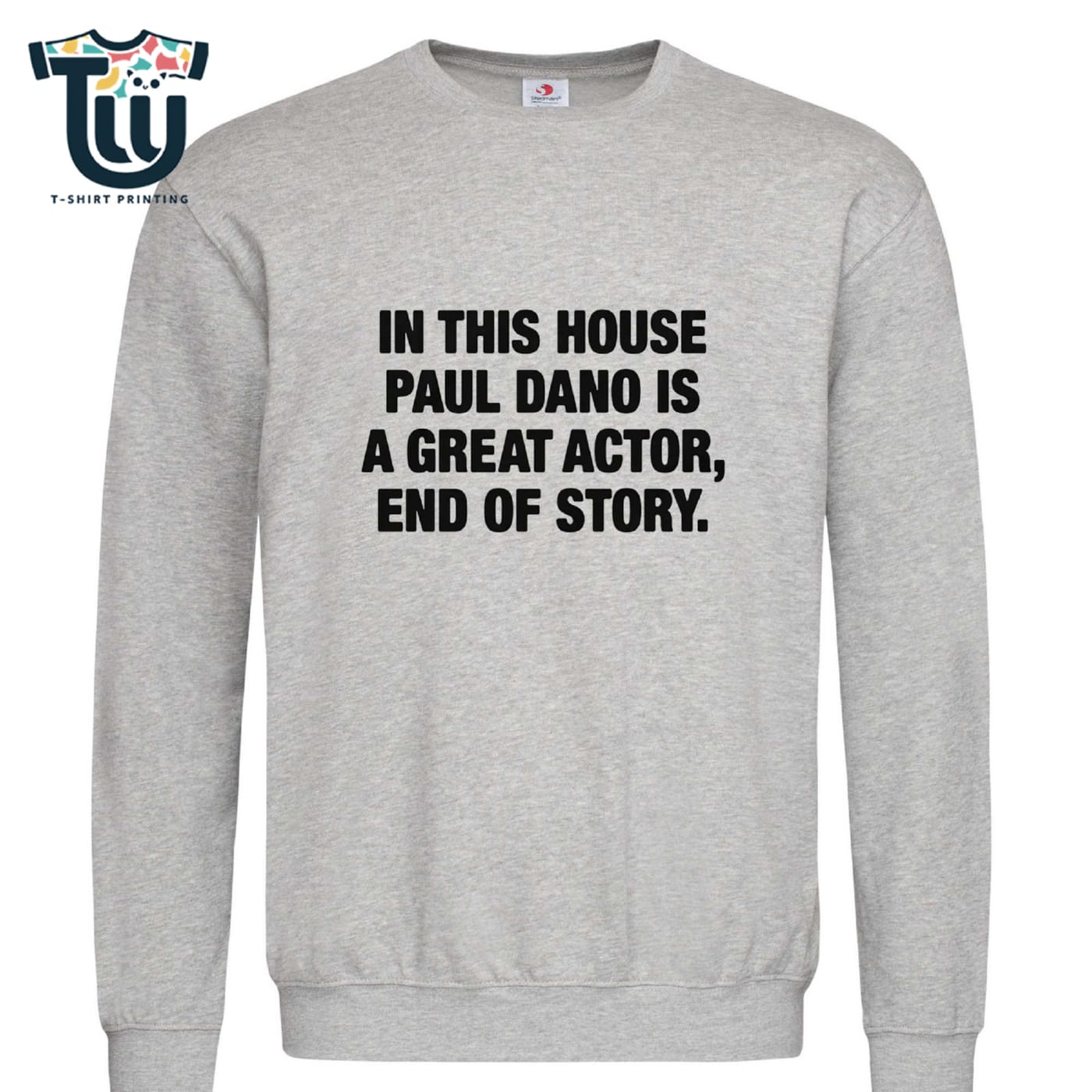 Elevate your casual wardrobe with this uniquely assertive piece that is sure to spark a friendly debate. The “In This House Paul Is A Great Actor End Of Story” design blends fandom with effortless, versatile style, making it the perfect conversation starter for any occasion. Pair the tee or crewneck with your favorite joggers for a relaxed, weekend look, or layer the hoodie under a jacket for instant, cozy street style. This apparel is optimized for Google search relevance, making it essential for those seeking original, high-quality, comfortable graphic tees, sweatshirts, and hoodies that express specific pop culture opinions. Stop searching for generic fan gear and start wearing a truly distinctive, end-of-story statement today.