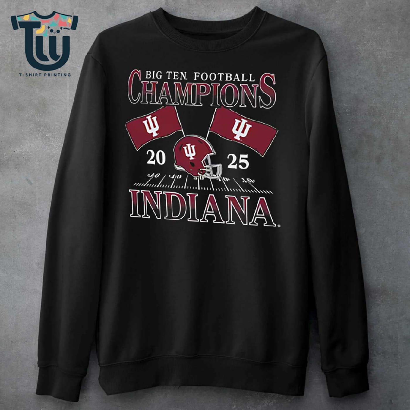 Indiana Hoosiers Black 2025 Big Ten Football Champions Flags T-shirt Information Product: