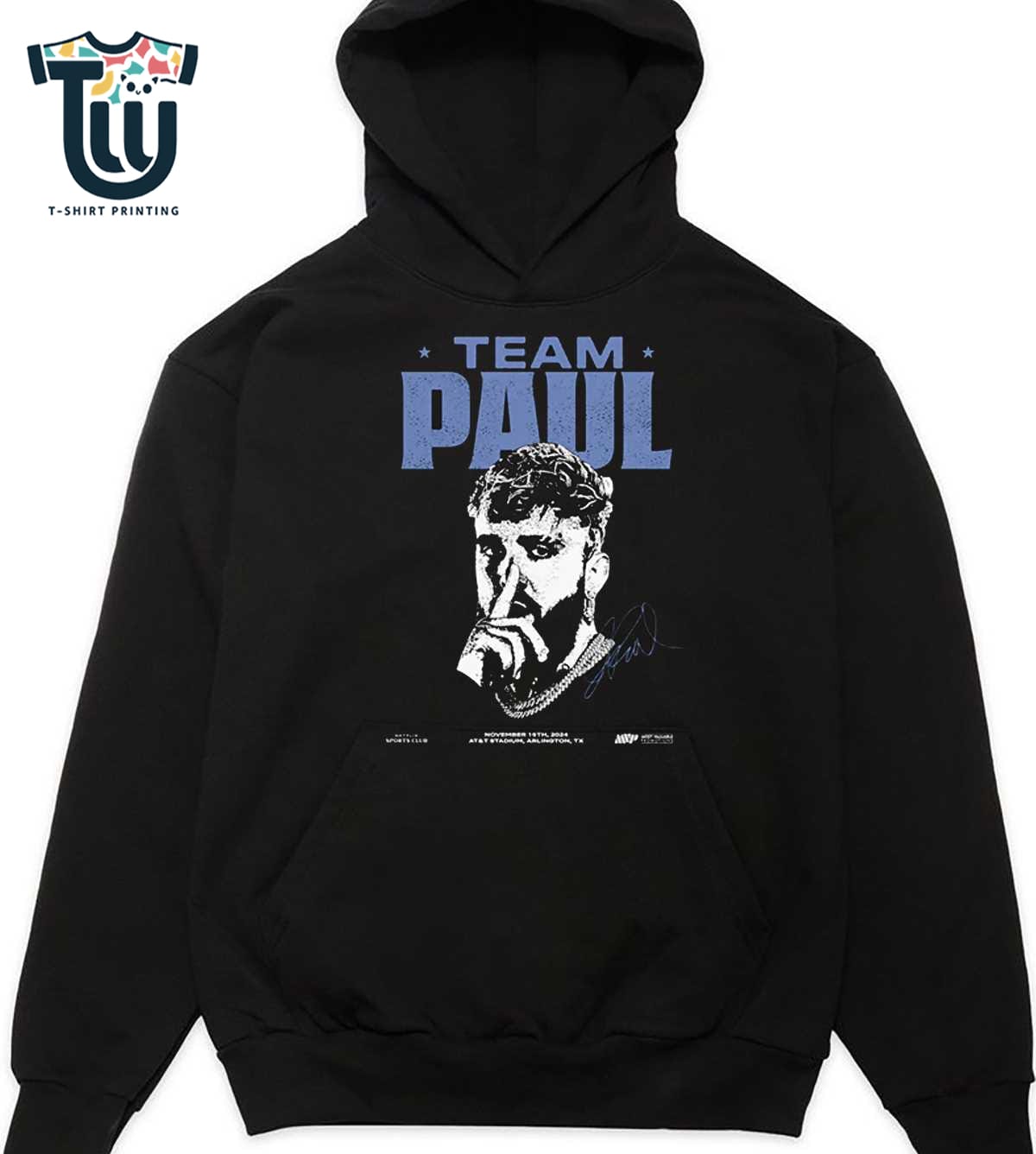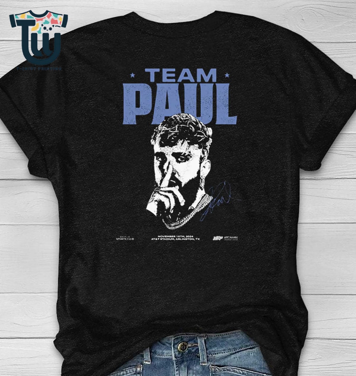 Join the ranks of Team Paul and wear your passion proudly. With the Jake Paul Vs Mike Tyson Team Paul T-shirt, you won’t just be a spectator—you’ll be part of the action! Don’t miss your chance to grab this exclusive piece of fight memorabilia that symbolizes the electrifying energy of this epic showdown. Make a statement and cheer on Jake Paul in style!