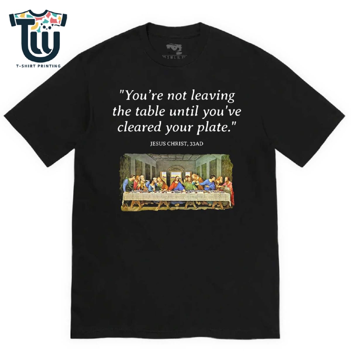 Jesus Christ Last Supper Quote You’re Not Leaving The Table Until You’ve Cleared Your Plate T-shirt Information Product: