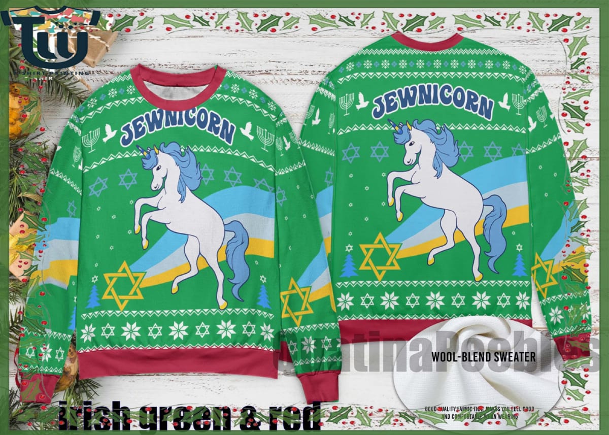Checkout Jewnicorn Hanukkah Ugly Christmas Sweater