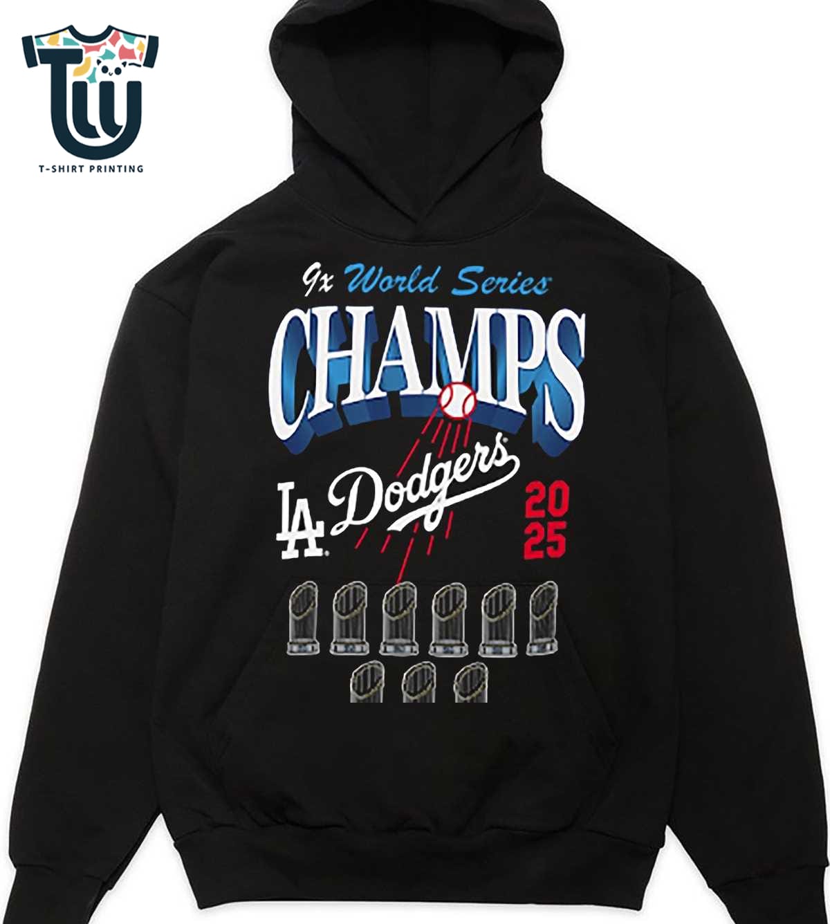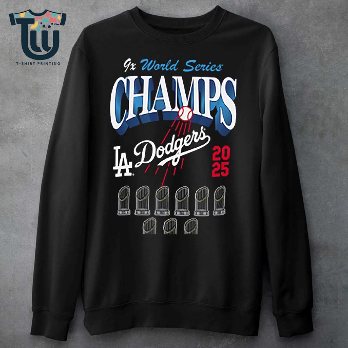 Los Angeles Dodgers New Era Nine-time World Series Champions Trophy T-shirt Information Product: