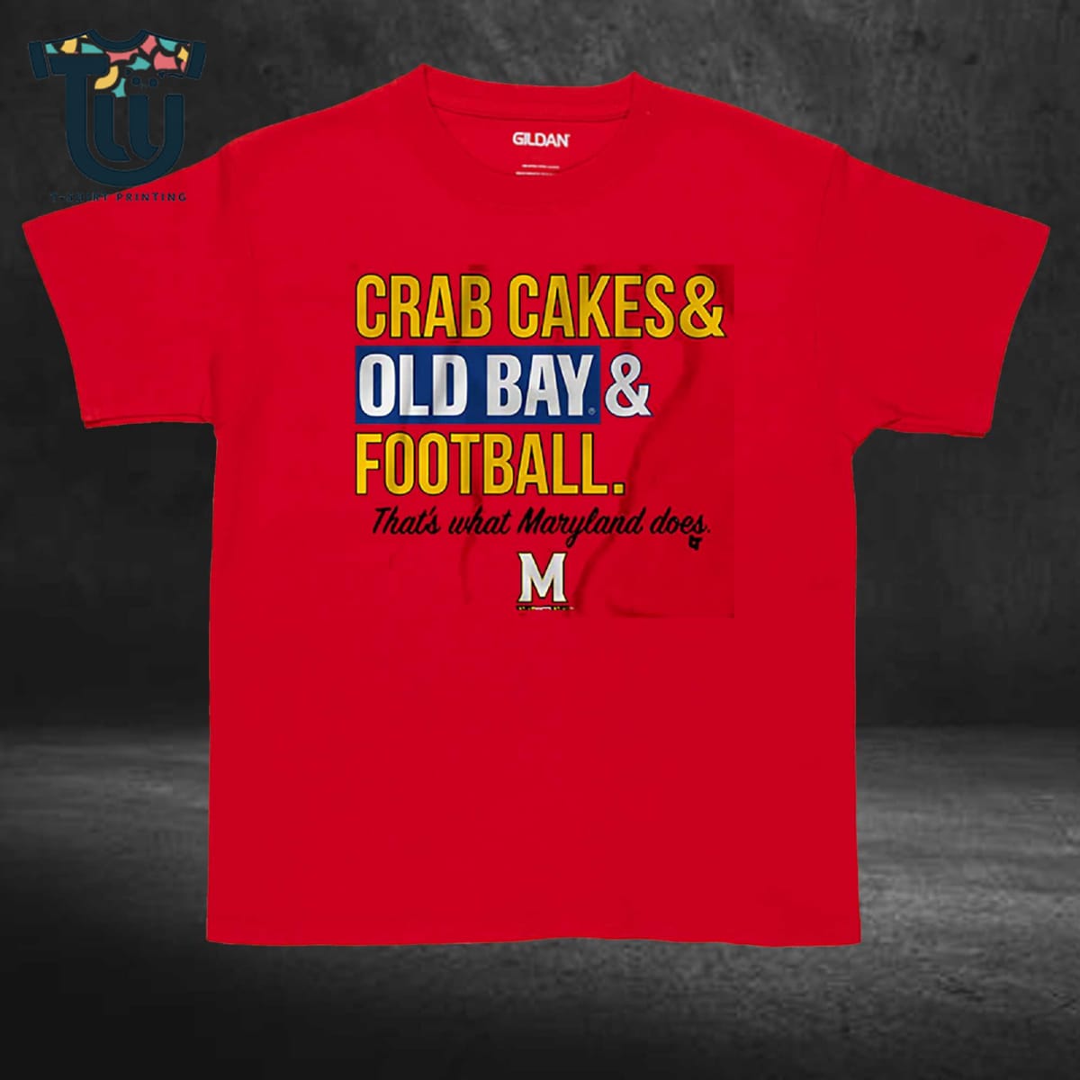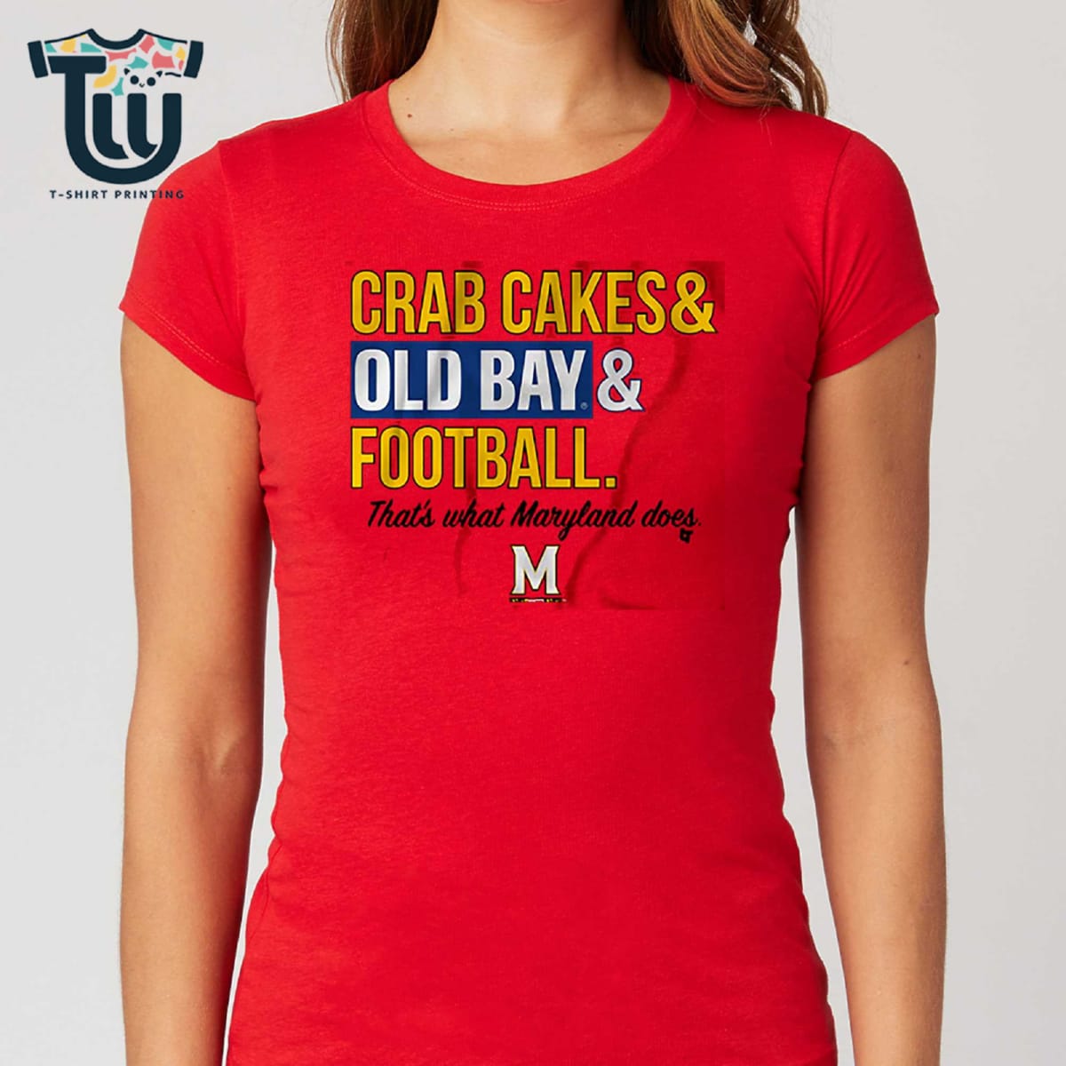 Checkout Maryland Terrapins Crab Cakes & Old Bay & Football T-shirt