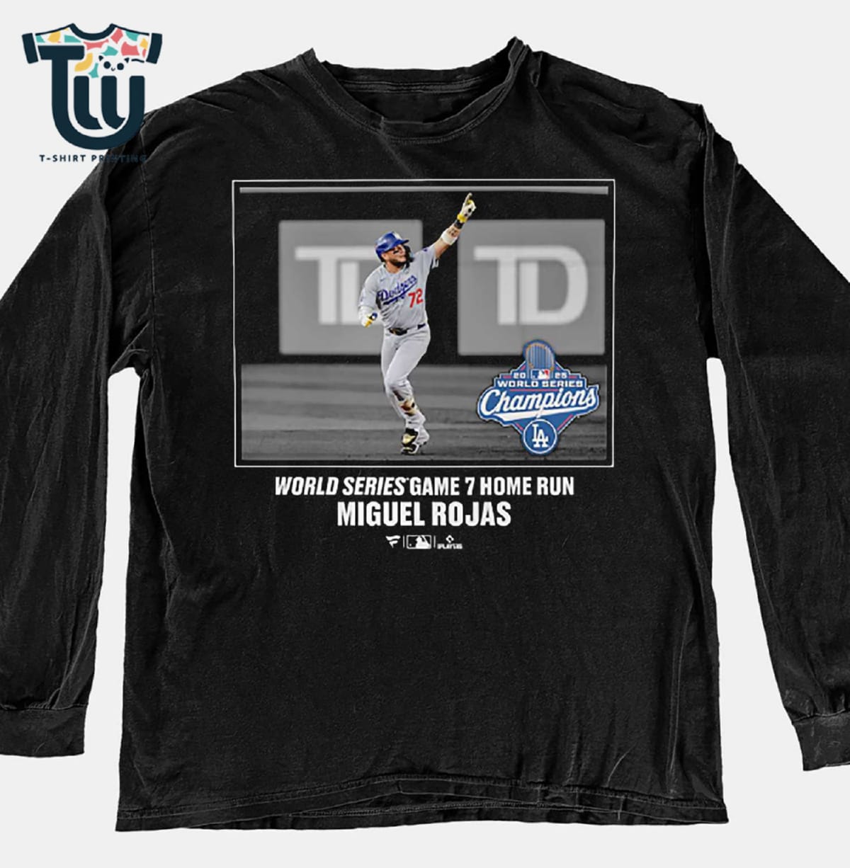 Checkout Miguel Rojas Los Angeles Dodgers 2025 World Series Champions Moment T-shirt