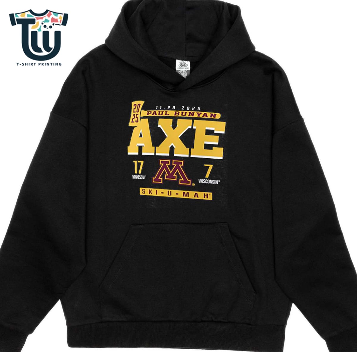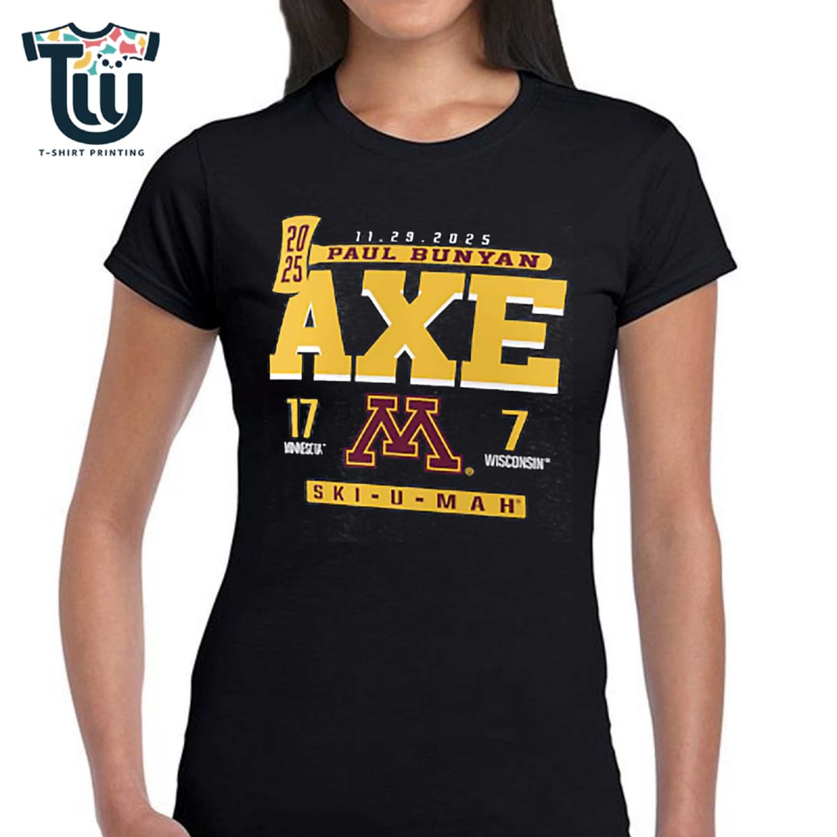 Capture the rivalry and claim your prediction early with the exclusive Minnesota Golden Gophers Vs Wisconsin Badgers 2025 Paul Bunyan’s Axe Score T-shirt! This isn’t just a shirt—it’s a durable statement of Gopher or Badger pride. We ensure your bold, projected score graphic stands the test of time and tailgates by employing professional-grade print technology. Whether it’s high-definition screen printing or vibrant DTG, the methods we use resist cracking, fading, and peeling, maintaining the crisp detail and vivid colors of the iconic Paul Bunyan’s Axe design. Invest in a piece of college football merchandise that looks sharp for every season, making it a must-have item in your collection of unique Big Ten rivalry gear.