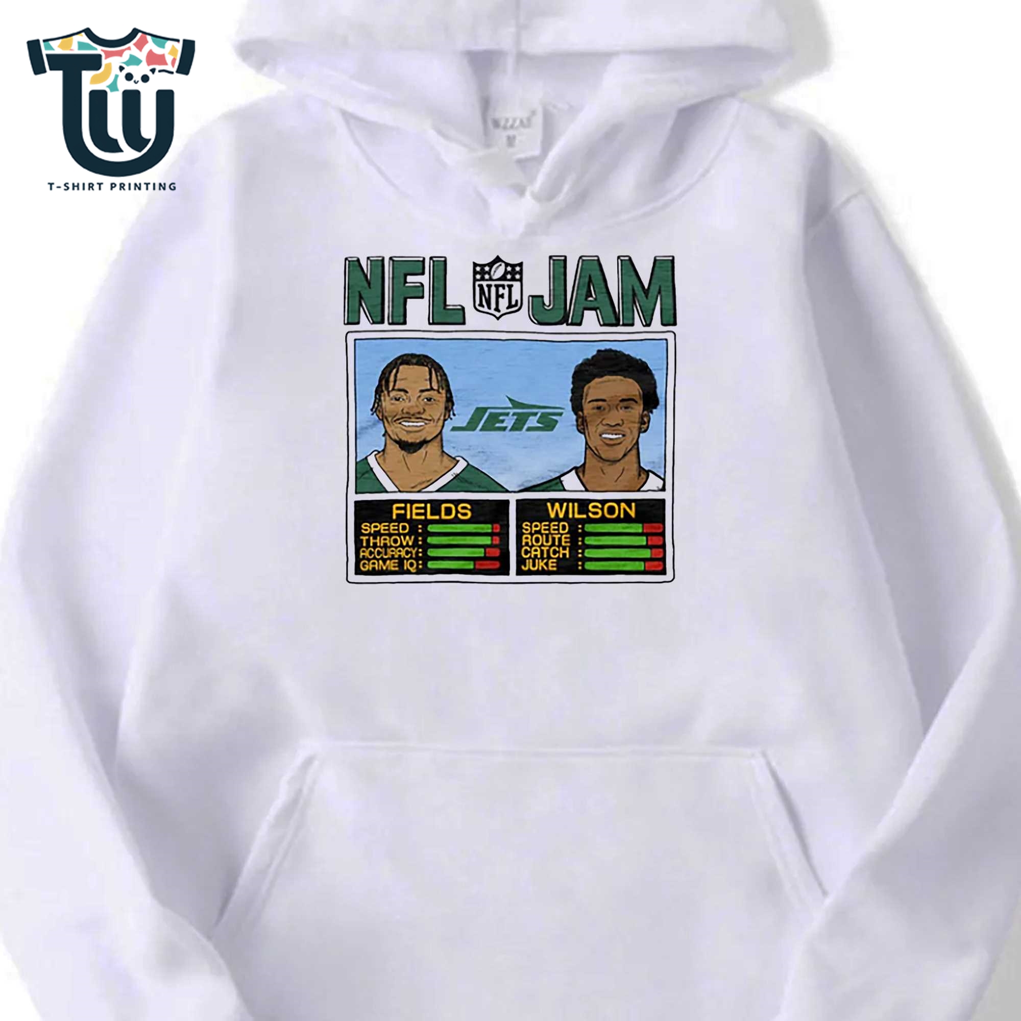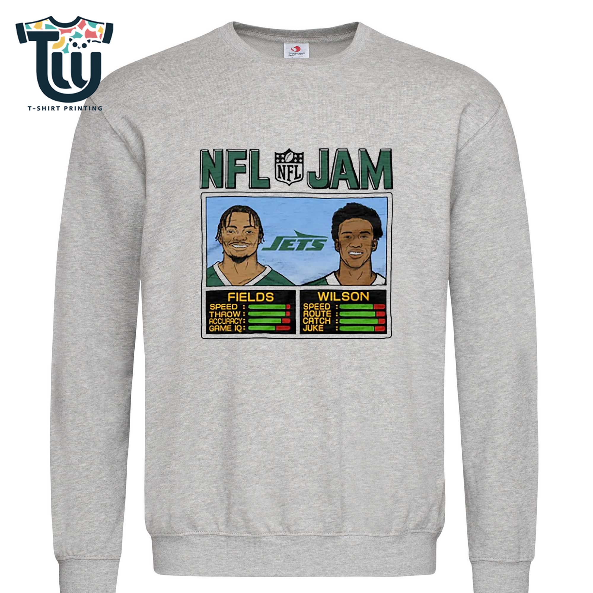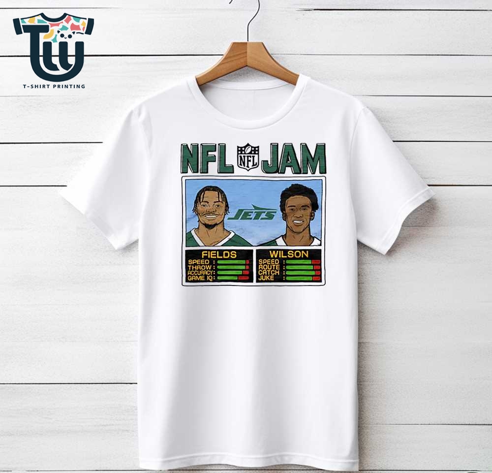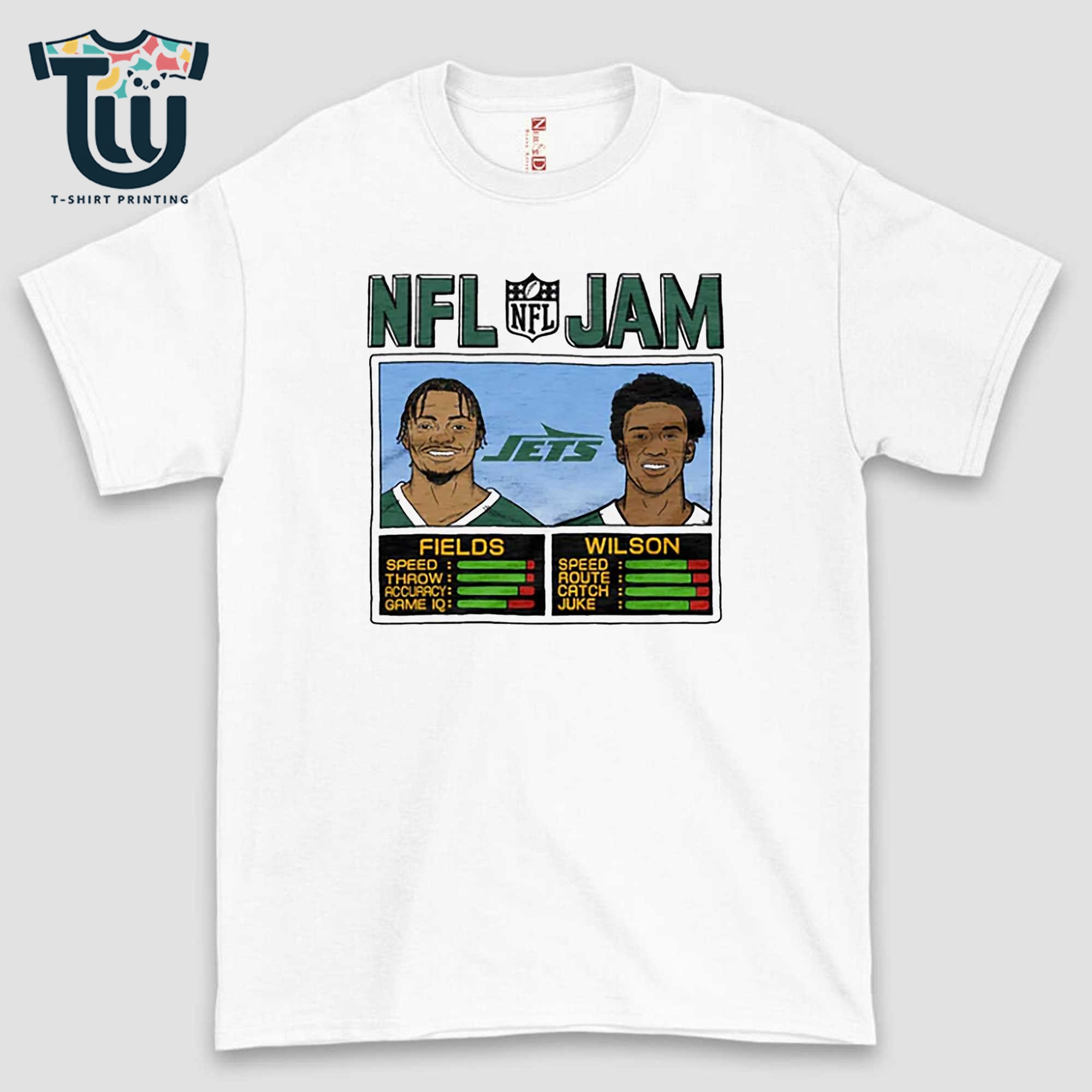 Level up your fandom with the exclusive NFL Jam Jets Fields and Wilson T-shirt, a nostalgic nod to classic arcade action fused with modern gridiron excitement. This isn’t just standard fan gear; it’s a wearable piece of art. We utilize premium screen-printing techniques, ensuring the vibrant, retro-style graphics of your favorite Jets duo—Fields and Wilson—remain bold, crisp, and crack-resistant, wash after wash. The detailed, high-resolution print captures the iconic “Jam” aesthetic perfectly, making sure your allegiance stands out in the crowd and guaranteeing maximum durability for seasons to come. Search terms like “NFL Jam T-shirt,” “Jets Fields Wilson merchandise,” and “vintage football apparel” will easily lead fans to this must-have collectible.