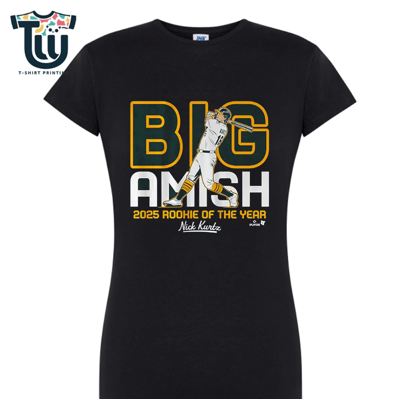 One of the standout features of the Nick Kurtz t-shirt is its vibrant and durable printing. The bold “Big Amish Rookie Of The Year” graphic is crafted with top-notch ink technology that resists fading and cracking, ensuring your shirt looks as good as new wash after wash. This high-quality print captures the essence of Nick’s dynamic journey, serving as an inspiring reminder of hard work and dedication. Whether you’re gifting it to a fellow fan or adding it to your own collection, this shirt offers both style and substance, making it an excellent choice for anyone who appreciates true talent and unique fashion.