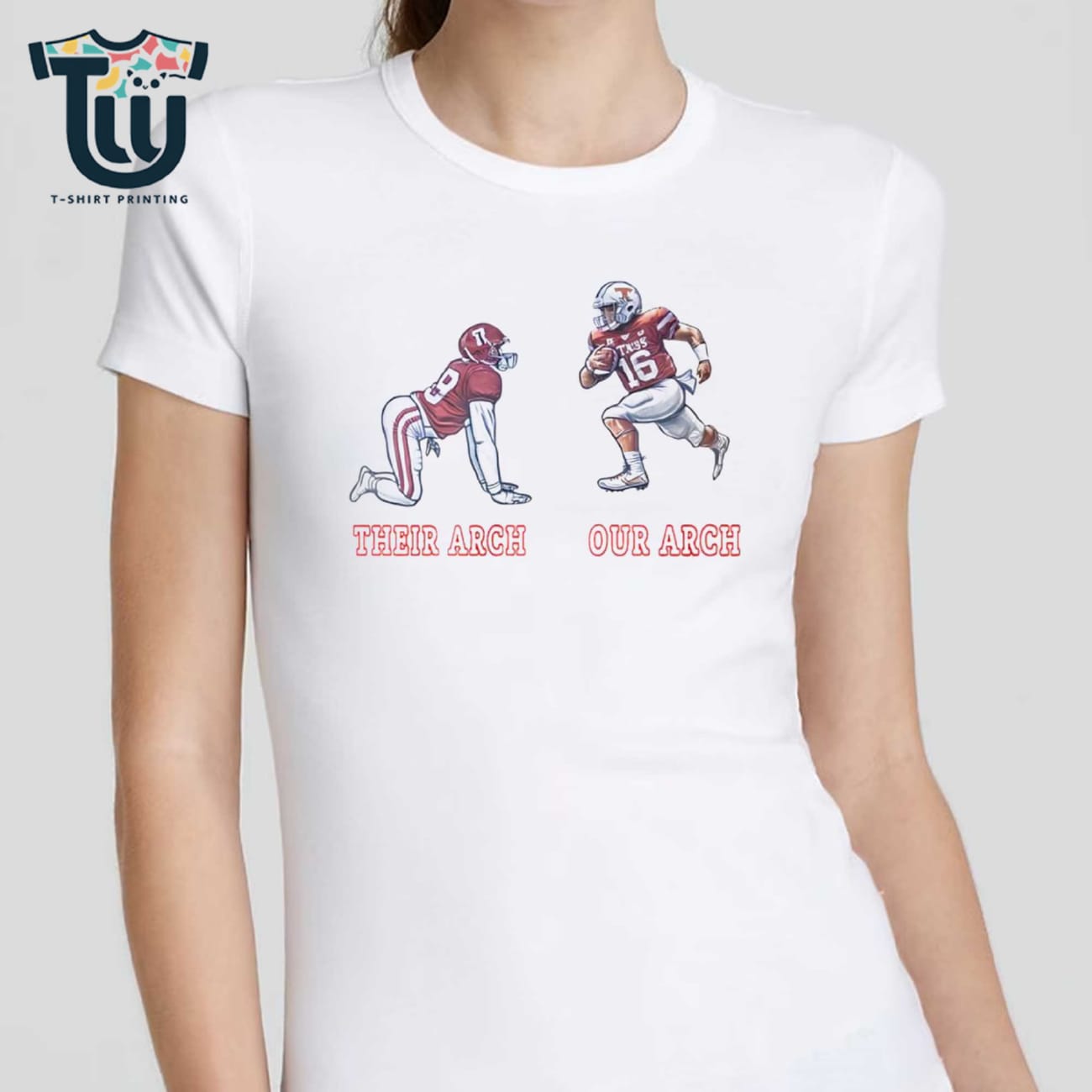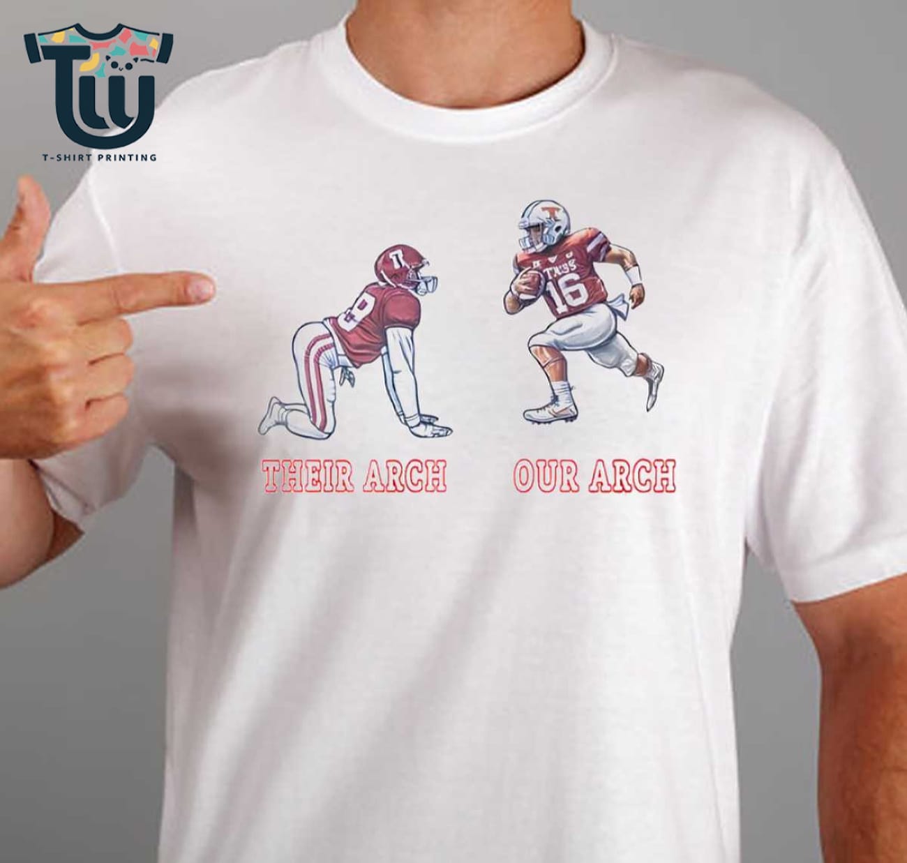 Show your unwavering support for the legendary rivalry with our stylish “Arch Texas Longhorns Vs Their Arch Oklahoma Sooners” shirt! Crafted from premium cotton fabric, this shirt seamlessly blends comfort with classic design, making it perfect for game day or casual outings. The bold arch graphic captures the spirit of competition between these two iconic college football powerhouses, allowing fans to represent their teams with pride and passion. Whether you’re tailgating at the Cotton Bowl or cheering from your living room, this shirt makes a statement that resonates with true fans.