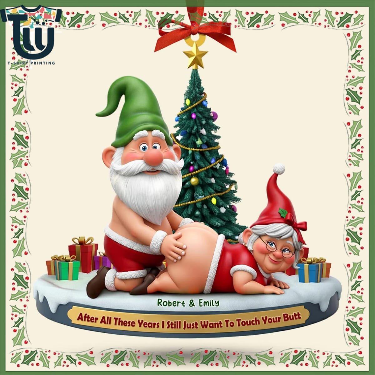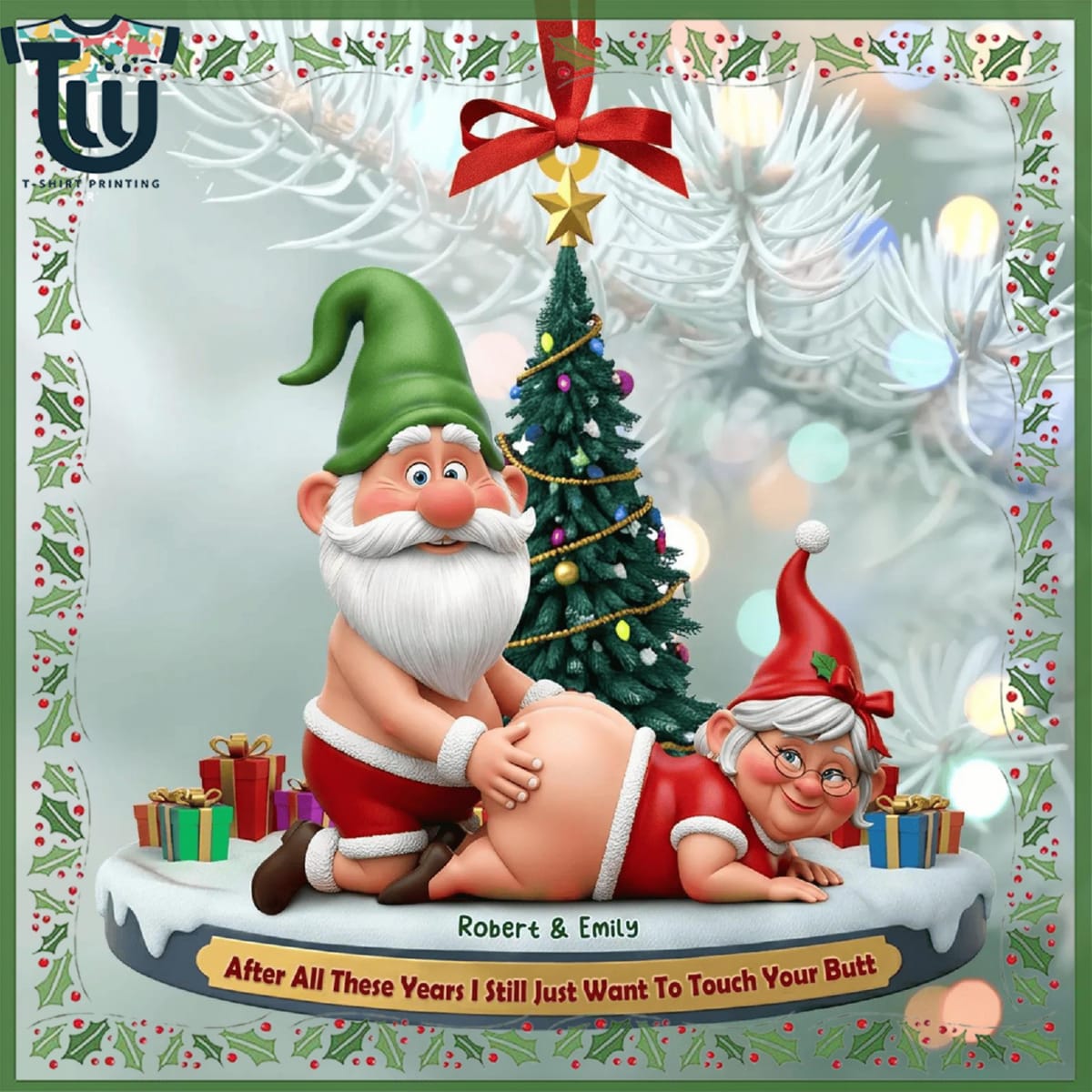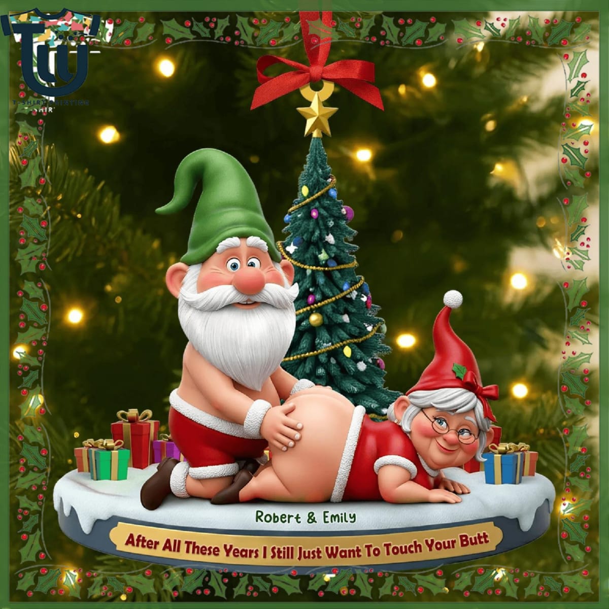 Information Personalized Naughty Old Gnome Couple Christmas Ornament