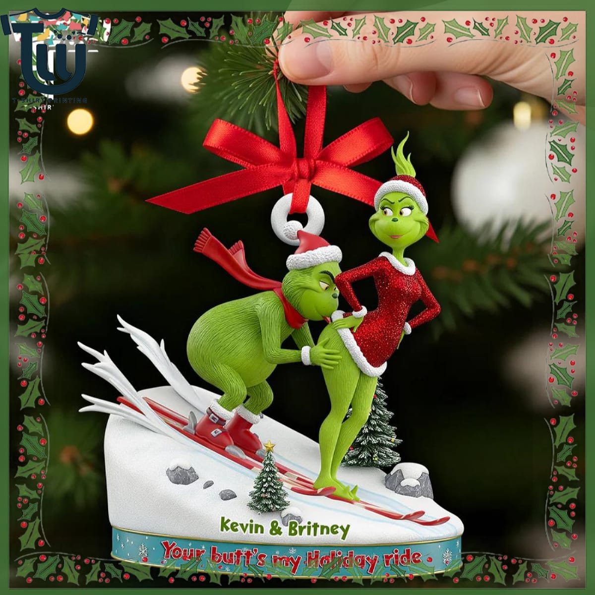 Checkout Personalized Skiing Couple Grinchmas Christmas Ornament