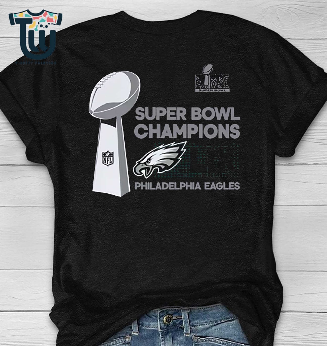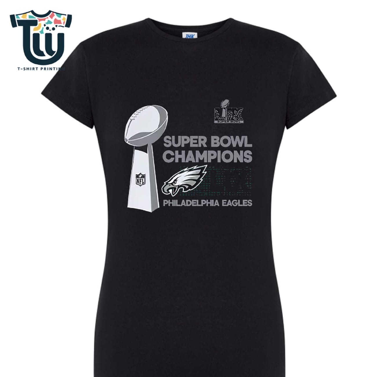The standout feature of this T-shirt is its eye-catching graphic that displays a bold, commemorative design celebrating the Eagles as Super Bowl champions. The vibrant team colors and intricate detailing pay homage to the team’s legacy, while the ‘Champions’ insignia proudly showcases the Eagles’ remarkable achievement. This shirt is not just apparel; it’s a piece of history, perfect for reliving the excitement of the game or gifting to fellow enthusiasts.