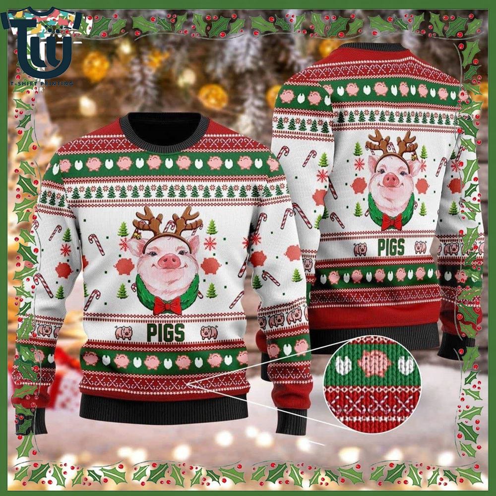Checkout Pigs Santa Hat Ugly Christmas Sweater For Men Women Christmas Gift Sweater Funny Xmas