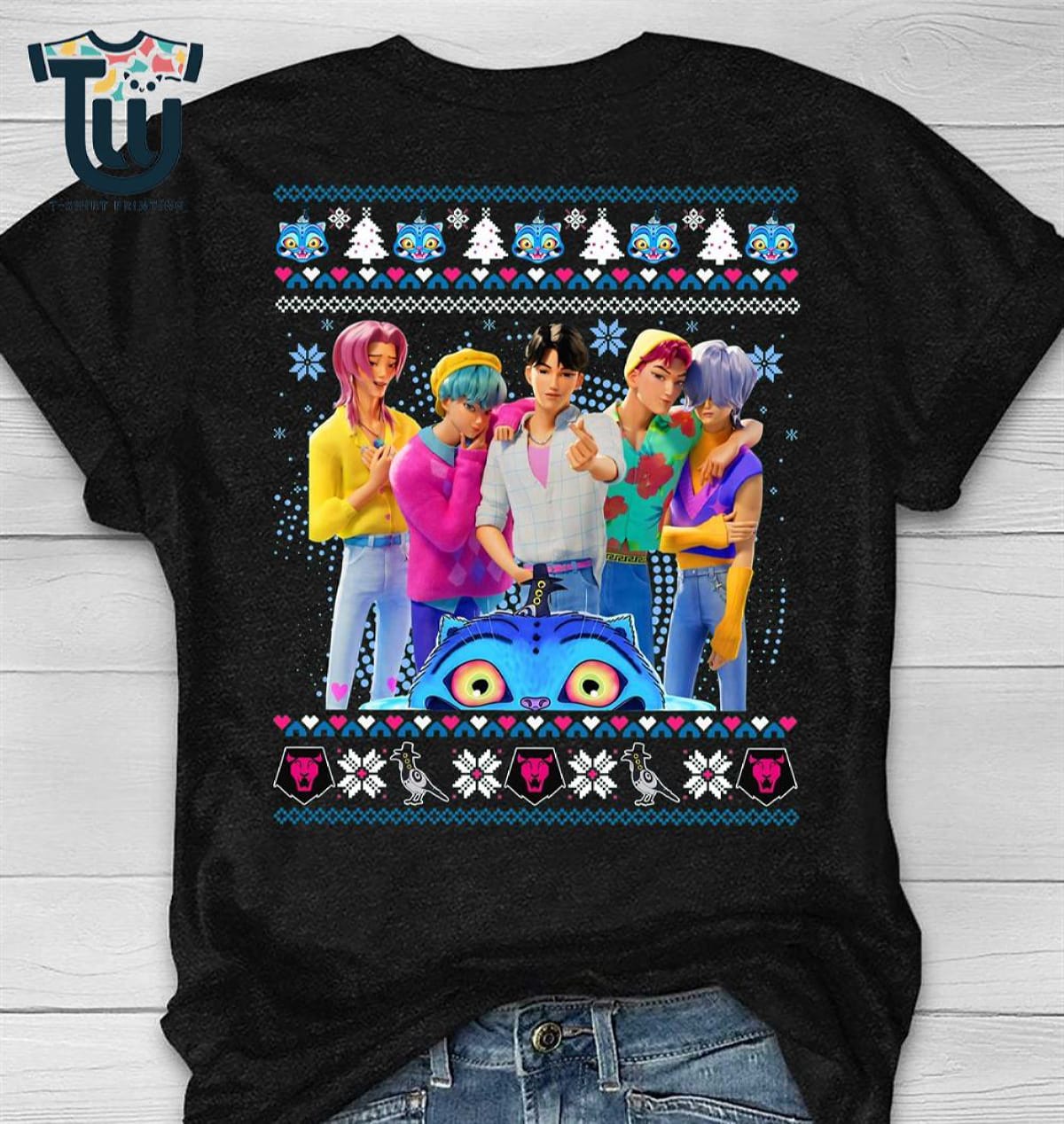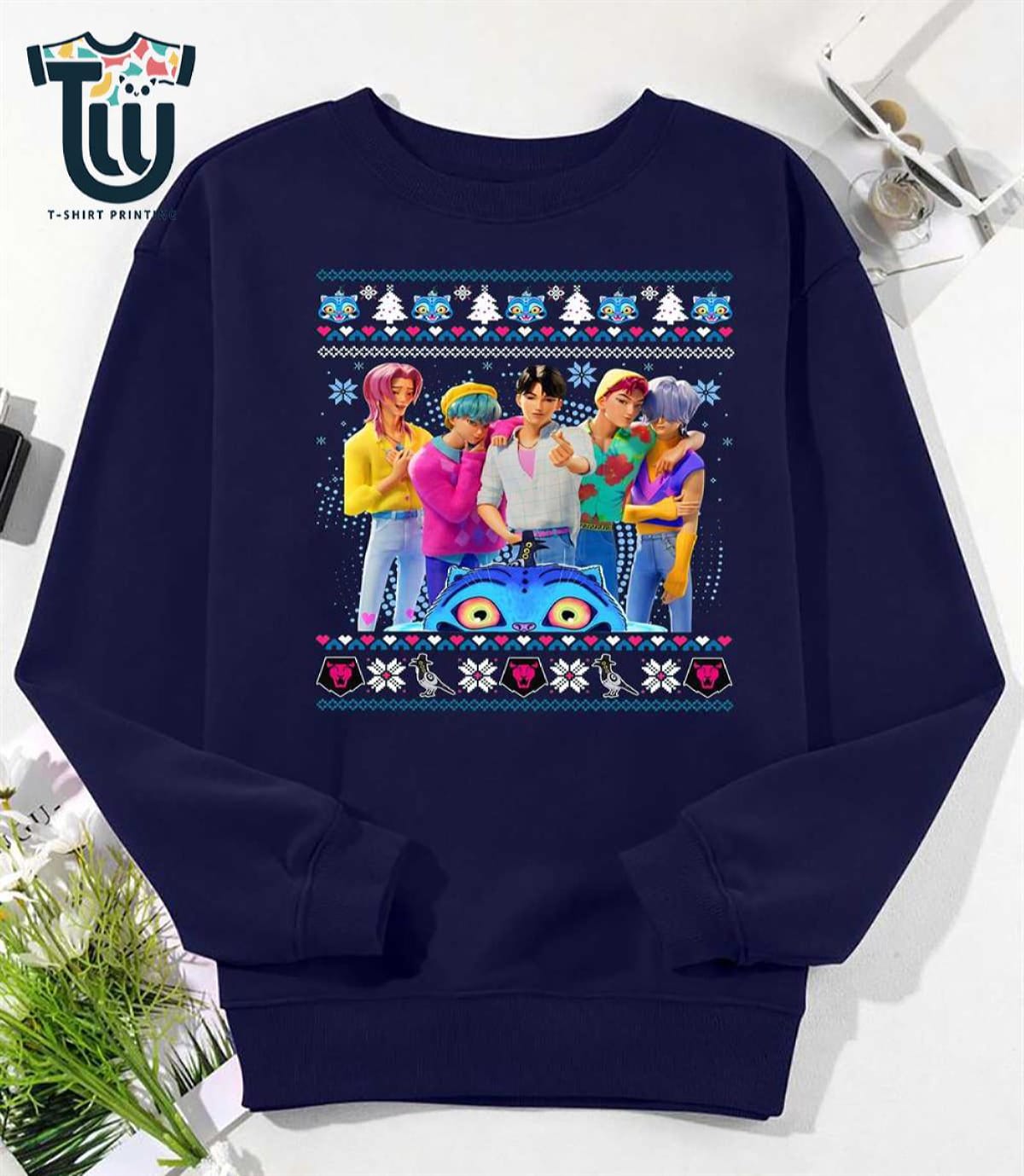 More than just a cozy staple, the Saja Boys Band Ugly Sweater Sweatshirt is a versatile fashion choice that pairs effortlessly with jeans, leggings, or even a festive skirt for an unexpected twist on holiday attire. Perfect for gifting or adding a splash of festive flair to your own closet, this sweatshirt brings fun back into fashion. Embrace the warmth, individuality, and style that the Saja Boys Band Ugly Sweater Sweatshirt offers, and spread the cheer wherever you go!