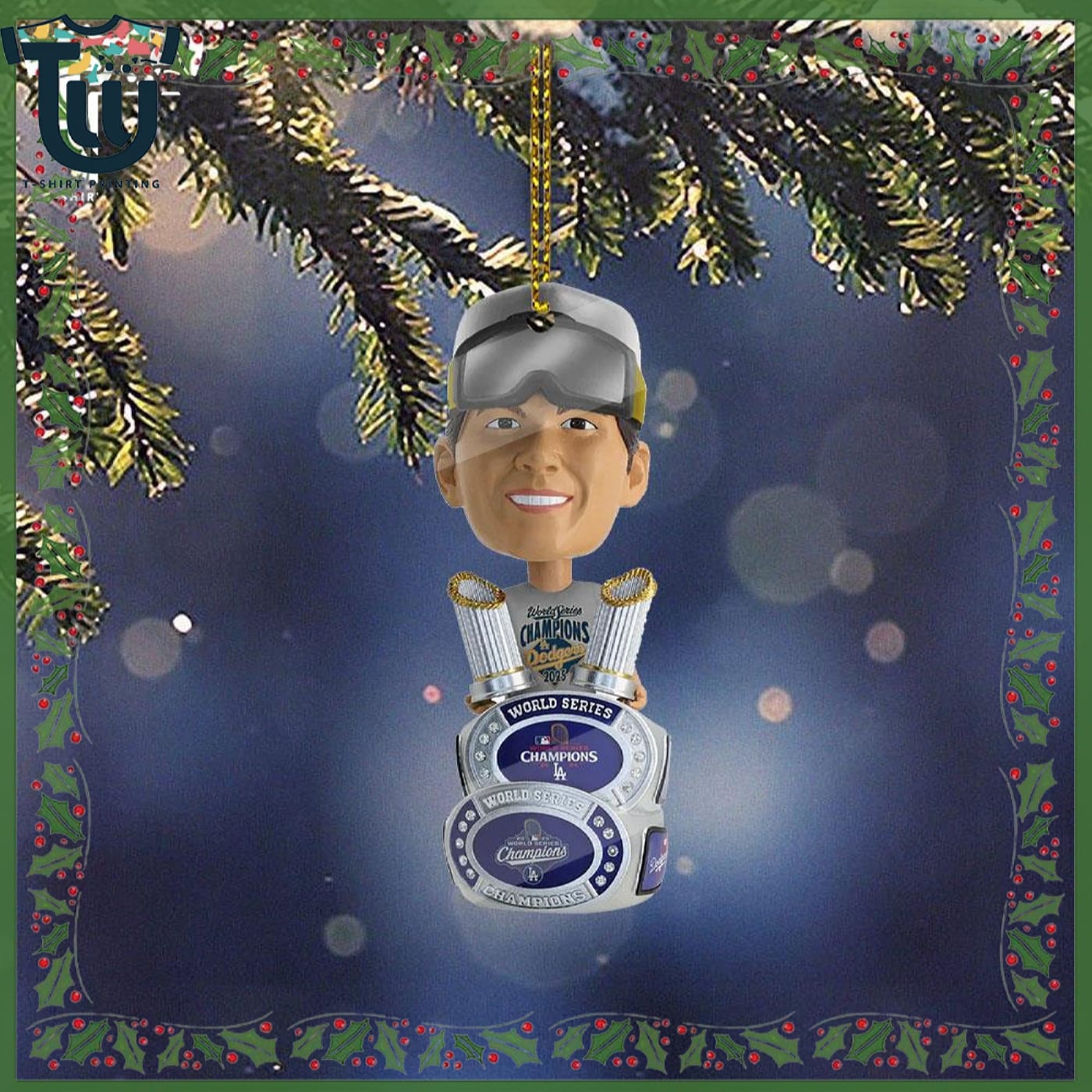 Embrace the spirit of victory with the Yoshinobu Yamamoto Los Angeles Dodgers 2025 Back to Back World Series Champions Christmas ornament. This high-quality piece is not just a decoration; it’s a delightful tribute to an incredible achievement in baseball history. Crafted with exceptional attention to detail, this ornament showcases vibrant printing that captures the essence of the Dodgers’ legendary triumphs. Whether you’re a devoted fan of the Dodgers or simply looking for the perfect gift for a sports enthusiast, this ornament will elevate your holiday décor and spark conversations throughout the season.
